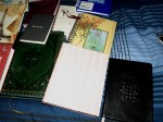 The angel journal is unused and is one my mother gave me for Christmas 2009. My sister gave me the globe notebook for my birthday, and it came from the Air and Space Museum.