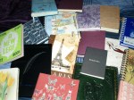 Rarely do I ever find a blog that compels me to read page after page of entries without stopping, but http://www.notebookstories.com is a wonderful exception I recently found. It’s an exhaustive site dedicated to journals, pens and all the accoutrements that can become addictions when one leads the writerly life. In addition to detailed reviews of many gorgeous writing books, people are encouraged to send photos of their collections to the “notebook addict of the week” feature. It makes me feel good to know there are other “old fashioned” pen and paper fanatics out there, so I thought I’d share photos of my journal collection.